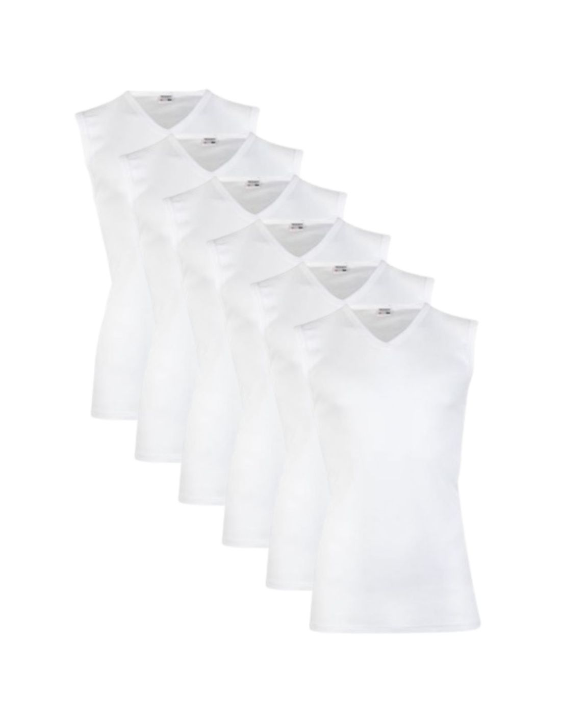 Beeren Heren mouwloos shirt V-hals M3000 6Pack Wit