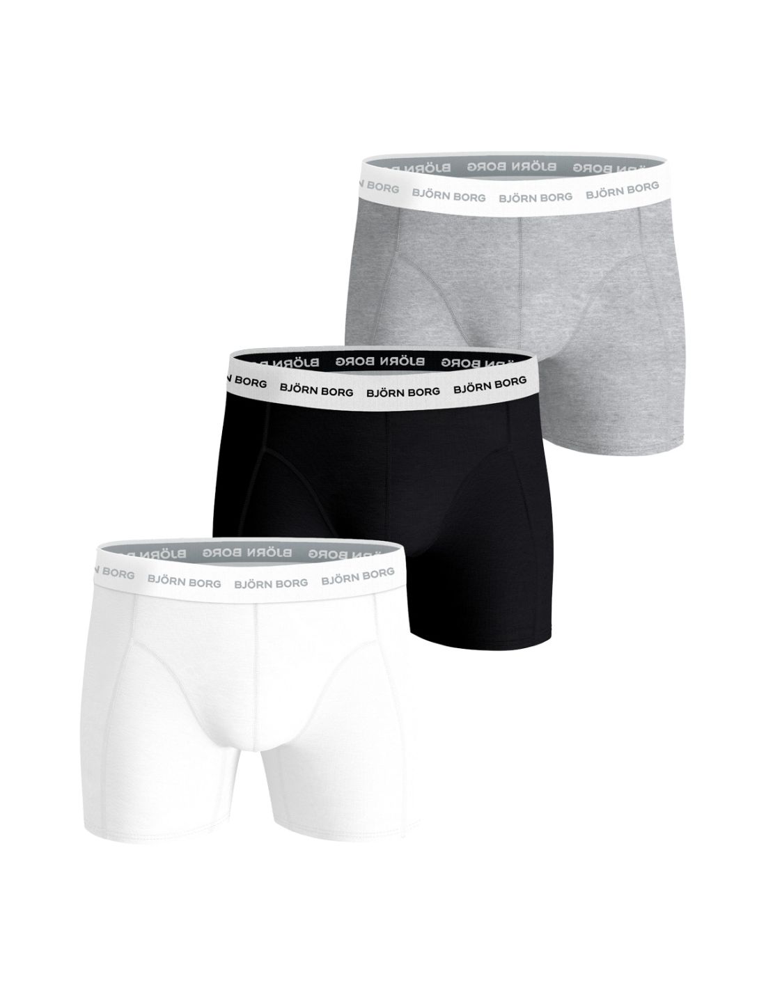 De Björn Borg Heren Boxershorts Cotton Stretch 3-pack MP011 Zwart Wit Grijs mix biedt ultiem comfort en een tijdloos design. Gemaakt van een ademende katoen-stretchmix, voelen deze boxershorts heerlijk zacht aan en bieden ze optimale bewegingsvrijheid. De elastische tailleband met het kenmerkende Björn Borg-logo zorgt voor een stevige, maar comfortabele pasvorm zonder knellen.