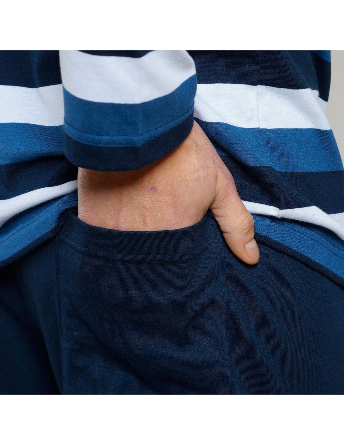 Het moderne, maar tijdloze streeppatroon in frisse blauwtinten geeft de set een verzorgde, chique uitstraling die moeiteloos aansluit bij je homewear. Praktisch in onderhoud en vormvast, zodat je keer op keer kunt rekenen op hetzelfde comfortabele draaggevoel. Kortom: een betrouwbare, stijlvolle pyjamaset die comfort, functionaliteit en klassiek design perfect in balans brengt.