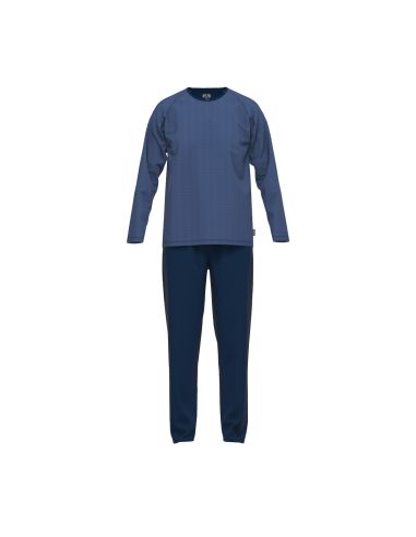 CECEBA Heren Pyjamaset Lang Micro Gestreept Blauw