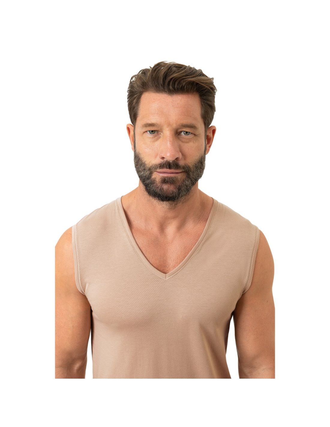 Het ontwerp met brede schouderbanden, V-hals en een nauwsluitende pasvorm maakt dit muscle shirt perfect onder elke outfit – of als minimalistische bovenlaag bij warm weer. Dankzij de geïntegreerde luchtzones en klimaatregulerende eigenschappen blijft je huid fris en droog, terwijl het materiaal actief vocht afvoert. Ideaal voor actieve dagen of als betrouwbare basislaag voor elke man die hoge eisen stelt aan comfort.