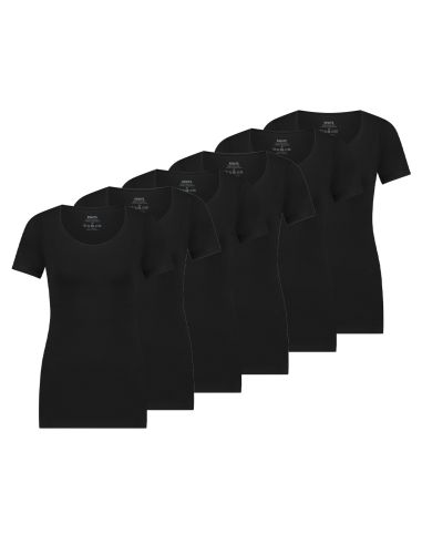 MWTS Dames T-shirt ronde hals zwart 3+3 6-Pack