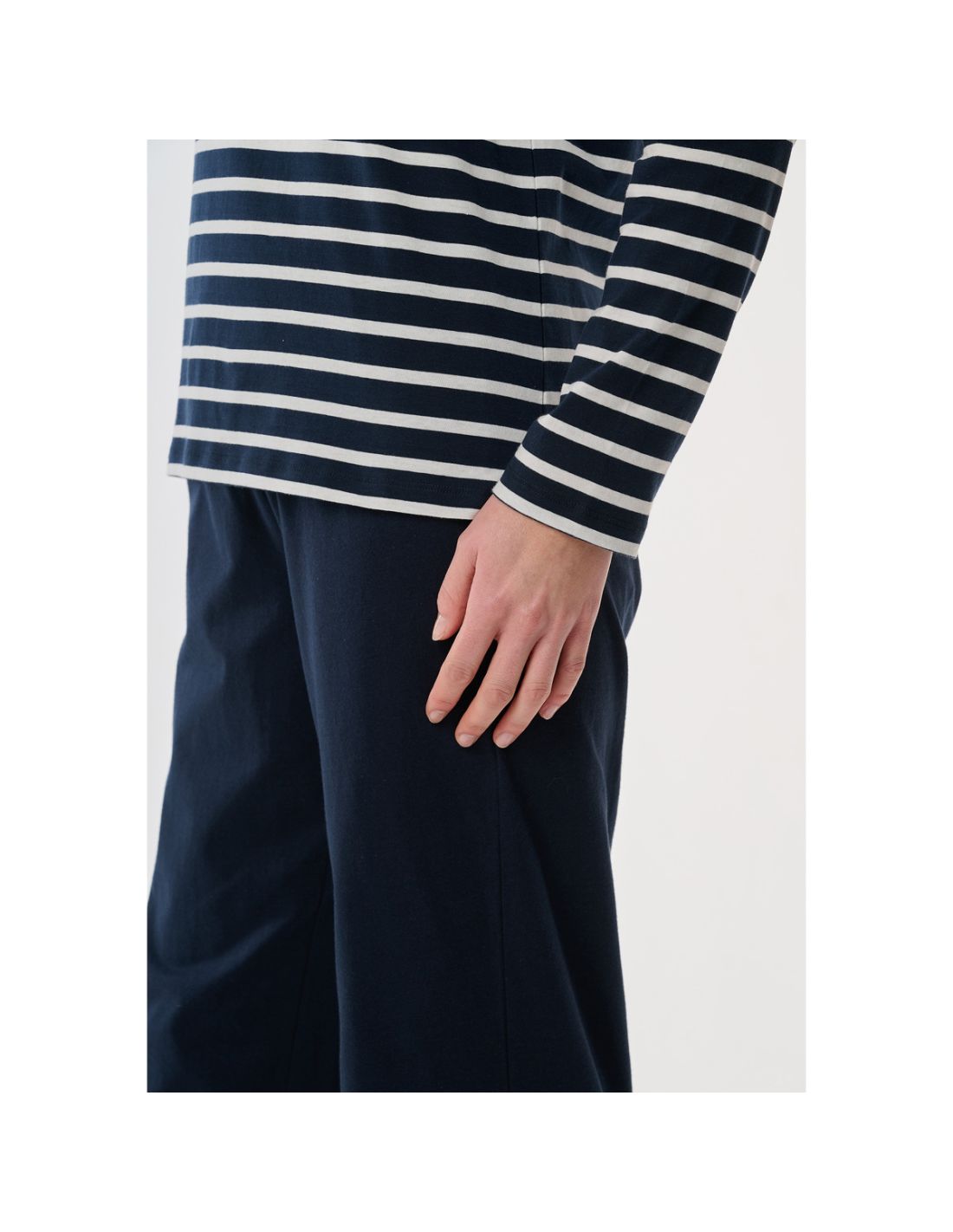 Casual Essentials lange pyjama in nachtblauw: zacht, soepel en ideaal voor wie ontspannen wil slapen in comfortabele stijl.