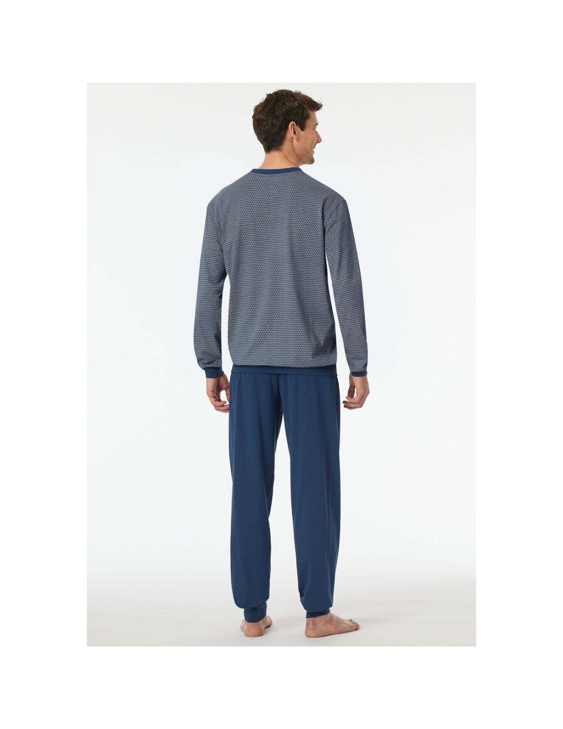 Ervaar ultiem comfort met deze lange blauwe herenpyjama van SCHIESSER Comfort Essentials. Stijlvol patroon, zachte Single Jersey stof en perfecte pasvorm voor een ontspannen nachtrust.