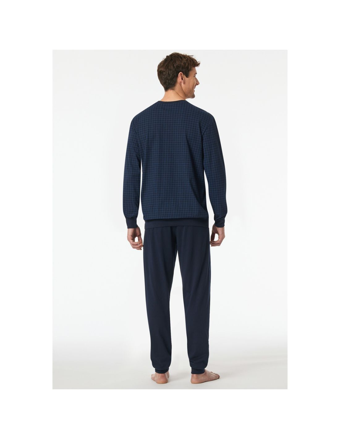 Ervaar ultiem comfort met deze lange blauwe herenpyjama van SCHIESSER Comfort Essentials. Stijlvol patroon, zachte Single Jersey stof en perfecte pasvorm voor een ontspannen nachtrust