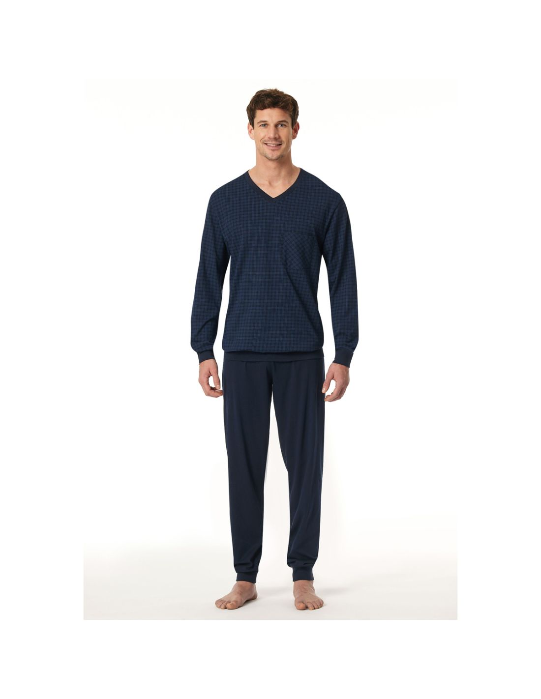 Schiesser Heren Pyjama Lang V-hals NightBlue